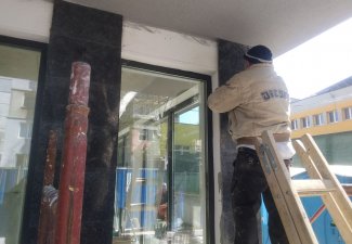 "Монтаж на фасадна облицовка от Сайдинг WPC Deckplast WS. Обюа площ: 43 м2 Контури и около прозорци и врати ( полага се L-образна завършваща лайсна 3х3..."
