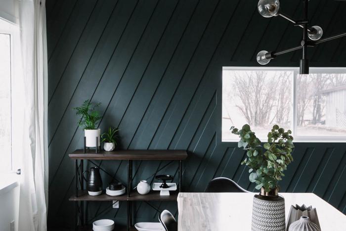 Тук вариантите са различни. Ако сте избрали дърво в красив цвят и можете перфектно да го комбинирате с дървените мебели в стаята, спокойно можете да го оставите така. Това ще бъде невероятен акцент в стаята, който моментално ще привлече погледите. Можете също така да боядисате дъските в цвета на стената. Така ще създадете впечатлението, че стената е многоизмерна и че цялата представлява една огромна конструкция, изградена от самото начало по този начин.