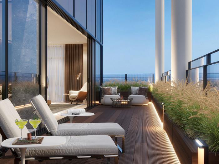 Както всичко в този мезонет, така и терасата на втория етаж е с внушителни размери. Тя е идеално място за почивка в топлите дни и разкрива идеална гледка през всички сезони.