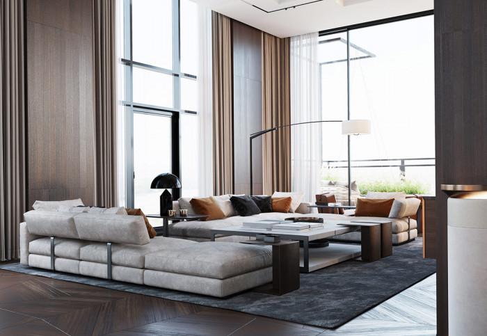 Високи тавани и много лукс са част от този мезонет. Той се намира в Русия и се простира на цели 1105 кв. м. Ако сте почитатели на актуалните тенденции в интериора, модерните мебели и стилния дизайн, то със сигурно този дом ще ви остави без дъх. А защо да не откраднете и някоя идея?