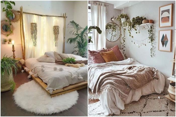 Спалня в бохо стил е идеална за малко помещение. Бохемската естетика си личи от украшенията и декорациите, като в същото време прави пространството да изглежда по-голямо и просторно.