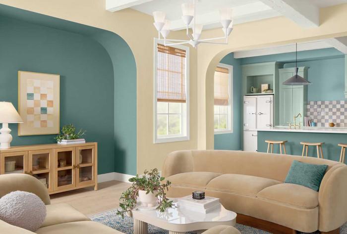 За да създадете драматичен и привличащ вниманието интериор, интегрирайте смелите акценти на 2025 г., включително кобалтово синьо, наситена горчица и нюанси на горски плодове. Тези цветове могат да привлекат вниманието на всеки, без да стоят като кръпка, когато се прилагат внимателно. Помислете за кадифен диван в цвят горчица в неутрална всекидневна или кобалтовосин кухненски остров, за да внесете енергия и изтънченост. Тези нюанси са подходящи за тапети с шарки, артистични стенни завеси или изразителни килими, които обединяват стаята. Съчетайте тези смели тонове с по-меки неутрални или пастели, за да поддържате баланс и да избегнете претрупването на пространството. Експериментирайте, за да създадете дом, който отразява както модерните тенденции, така и вашия личен стил.