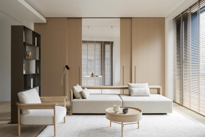Контрастът е внесен чрез акценти от светли или различни по цвят дървесини, които добавят дълбочина. Текстурите имат много важна роля. Различните повърхности създават сложен и динамичен модел. Този дизайнерски подход не само че внася разнообразие, но и придава усещане за близост с природата.