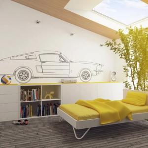 Помещението е нестандартно и изключително. В стаята се слиза по стълби, които обособяват тийн зоната.