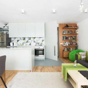 Тя представлява едно цяло помещение с кухнята, което прави двете стаи да изглеждат много просторни.