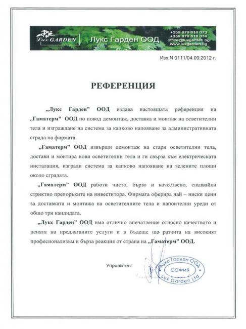 Гаматерм ООД е компания развиваща се в сферата на новите технологии и системи за работа в отоплението, ВиК инсталациите, електроинсталаците и термографските обследвания на обекти и системи, както на жилищни така и на индустриални сгради.