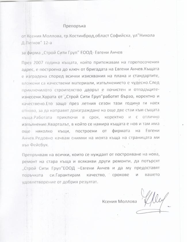 Разгледайте моя профил и качените проекти - построени еднофамилни жилища - и се убедете сами в моите способности и в това, което предлагам. Квалификация: Дългогодишен стаж в строителството.
