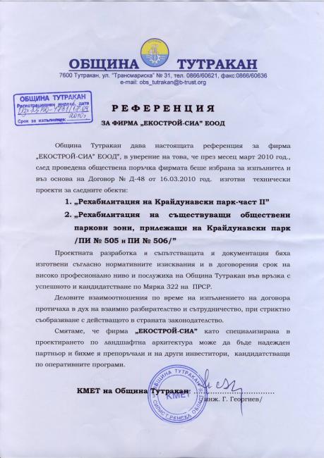 Екипът на"ЕКОСТРОЙ-СИА" ЕООД се състои от специалисти с над двадесет годишен опит в проектирането и изграждането на обекти по паркоустройство. В творческият архив на фирмата има множество проектирани частни обекти, обществени пространства, хотели и вилни селища, паркове, градски центрове, детски площадки, спортни площадки, вилни парцели, лесопаркови територии и др. Професионално геодезично заснемане, проекти по вертикална планировка, трасировъчни чертежи и 3D визуализации. Изпълнили сме десетки обекти по озеленяване в гр. София и страната. Разполагаме със собствено разсадниково производство. Предлагаме декоративна растителност с доставка до обекта на цени на производител. Предлагаме комплексно проектиране по ландшафтна архитектура и съпътстващи специалности за кандидатстване за еврофинансиране по оперативни европейски програми свързани със селски туризъм, туристически атракции и др. Имаме редица проектирани, реализирани и вече пуснати в експлоатация обществени и частни обекти, финансирани с европейски средства в периода 2007-2013г.