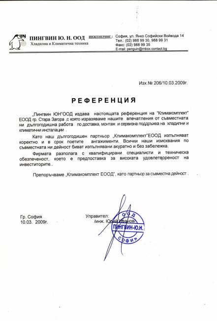 “ Климакомплект” ЕООД гр. Стара Загора ,работи от 1994г. в областта на климатизацията . Осъществява проектиране , доставка, монтаж и поддръжка на изпълнените от нея климатични инсталации