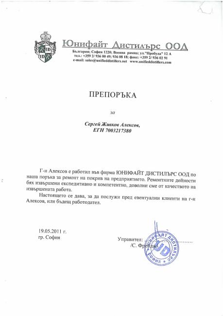 “Покривни ремонтни дейности в района на Крамекдс АД София. Извършени са покривни и тенекеджийски ремонтни работи на производствени халета в периода 2008-2014 в размер на 35 000 кв.м”