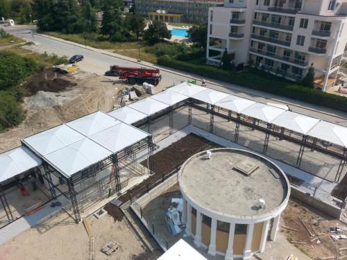 Работили сме по редица големи проекти (Терминал 2 на летище Бургас, масивни конструкции пред Hollister в Слънчев Бряг, парапети и огради на много сгради в града и околните курорти, самостоящи и окачени тенти , промишлени халета , хладилни камери , месарски цехове и др.) На кратко, изработваме почти всичко, което се прави от метал!