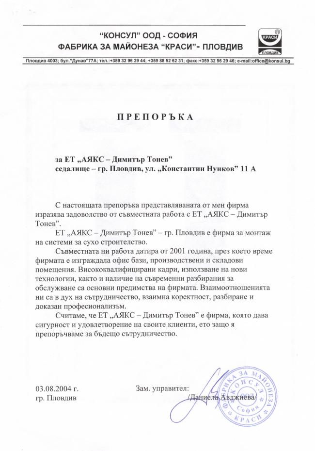“Много коректна фирма. Инж.Тонев си разбира от работата.”